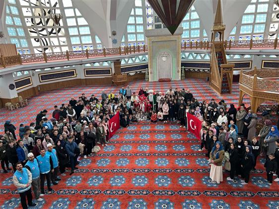 Öğrencilere giriş anında kendileri için hazırlanan özel hatıra kartlarını takdim eden ve rehberlik eden din gönüllüleri, çocukların cami ile sıcak bir bağ kurmasını sağladılar.
